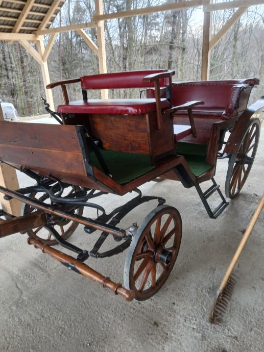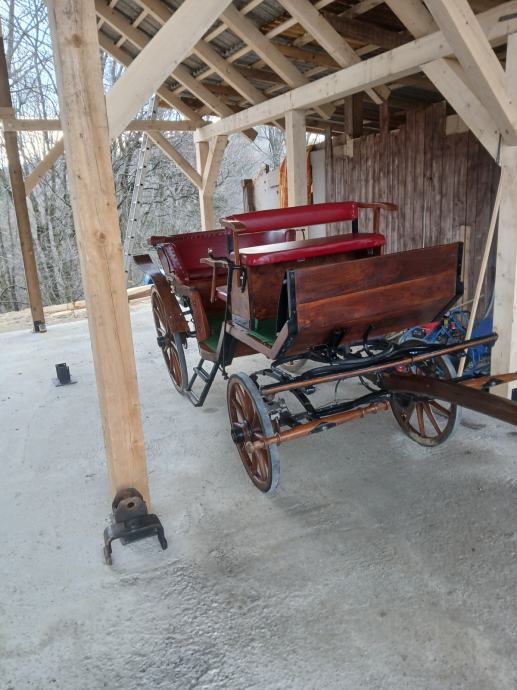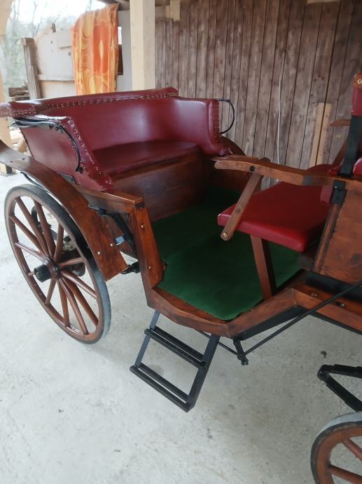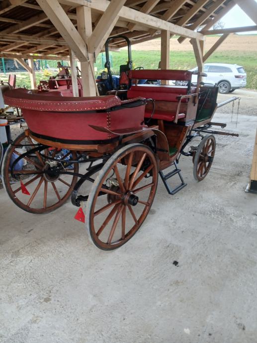 Naprodaj kočija viktorija , kompletno obnovljena ! Vse 4 disk zavore ter ročna zavora. Primerna za 6 oseb.