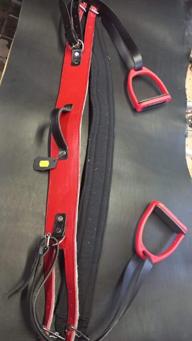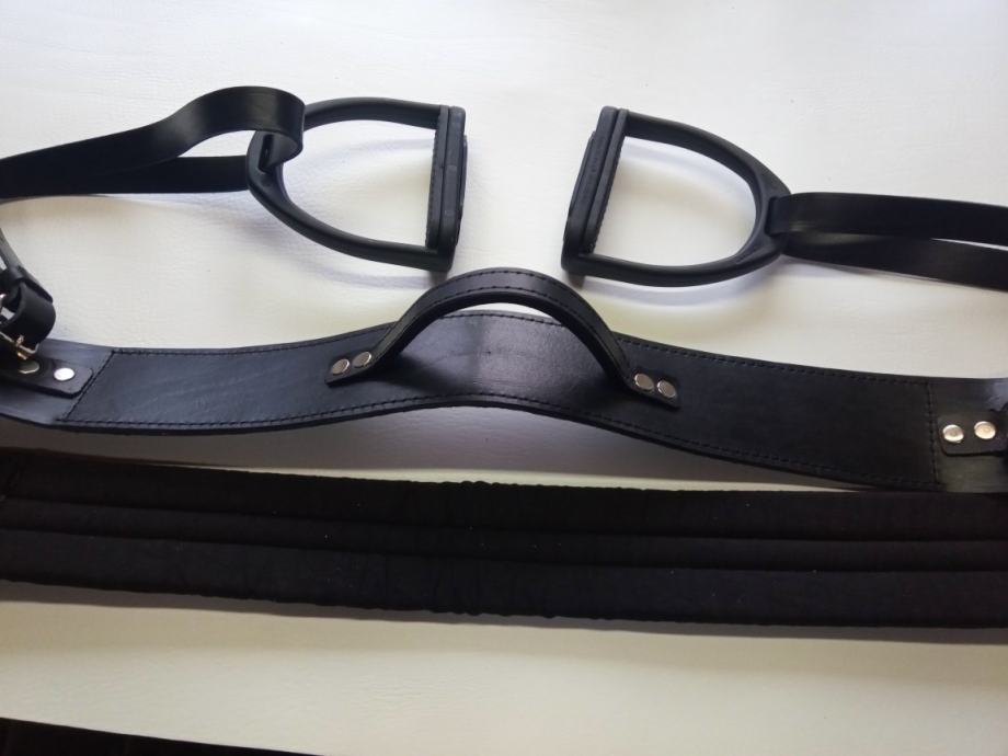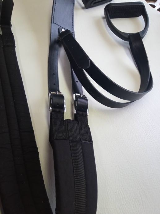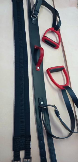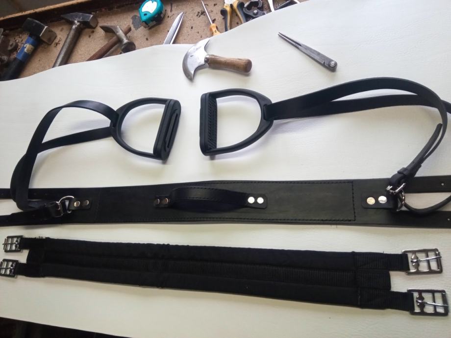 Jahači kolan sa uzengijama i remenima za uzengije , za jahanje bez sedla . Sve od kože , za sve veličine odraslih konja , podesivo , novo , povoljno , slanje poštom .
