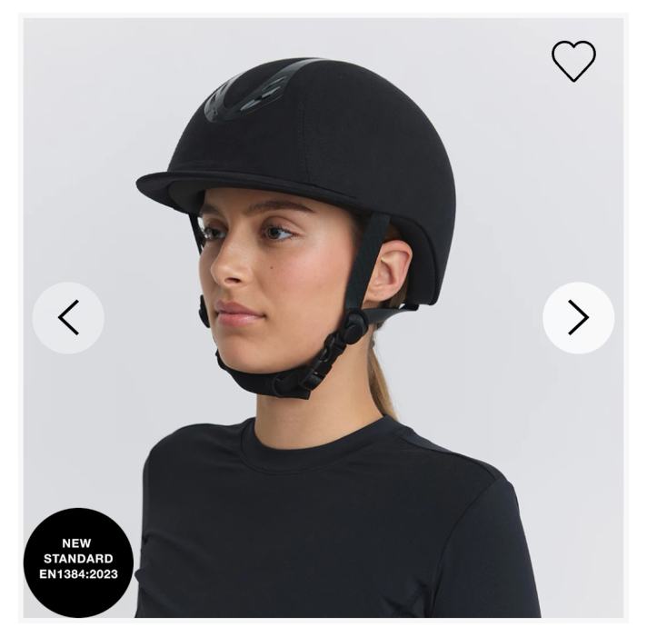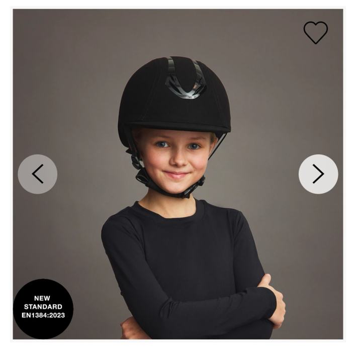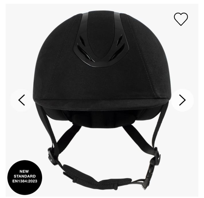 Jahačka kaciga odobrena prema CE1384:2023. Vanjski dio od modernog mikrovlaknastog baršuna. Podesiva 3-točka PP traka s čičakom za dodatnu sigurnost i mekani obod koji smanjuje rizik od ozljeda u slučaju nesreće.