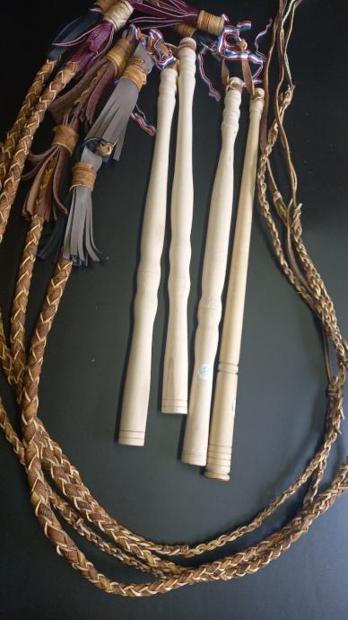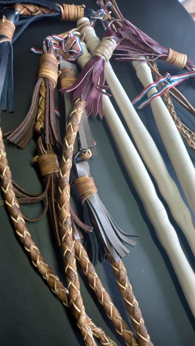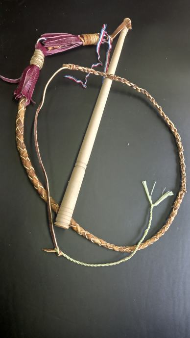 Kanđija za pucanje , Slavonska tradicionalna , koža upletena , drvena tokarena drška , dužina cca 2,5 m , novo , slanje poštom .