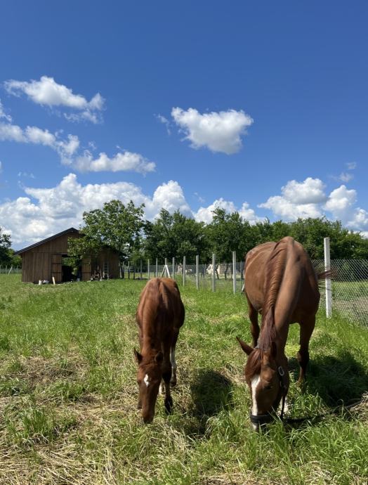 Prodajem kobilu sa ždrijebetom zbog manjka prostora. Kobila ima 9 godina, a ždrijebe 5 mjeseci i uskoro spremno za odvajanje. Kobila je ujahana, radi se s njom, diže sve četiri noge, mirna i pouzdana. Imaju crvenu knjigu.