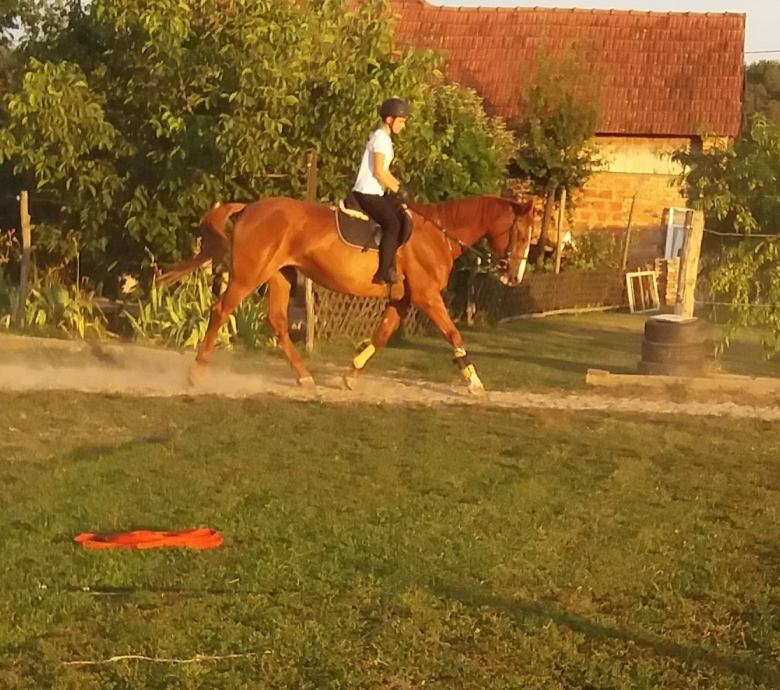 Kobila 12 god. do sada jednom pripuštena i dala jedno muško ždrijebe , zadnjih dvije godine radi sa djecom u školi jahanja, pripremama za polaganje jahačih dozvola i licenci za dresuru, u fotografijama je i rodovnik, visine 167 n.š. izdašnih kretnji, vrlo snažne građe, zdrava. Prodaje se jer nam hitno treba konj za terapijsko jahanje. Cijena se dogovara.