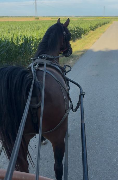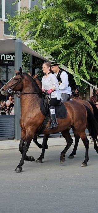 Vozi sama i u paru, jaši se, jako mirna, umiljata, naucena na pastir, konstantno je na pašnjaku, zdrebna sa vrancem.