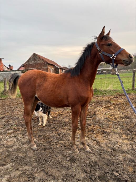 Naučen na osnove, dizanje nogu, stavljanje/skidanje ulara, vođenje na povodcu, vez, četkanje, itd…
