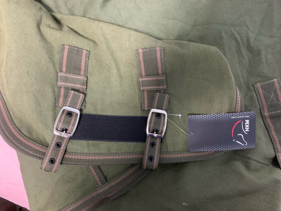 Nova nikad korištena deka marke HKM, ima etiketu na sebi. Moze se koristiti ko štalska deka ili na putu do jahališta. Nema punjenja (0g), dužine je 125 cm.