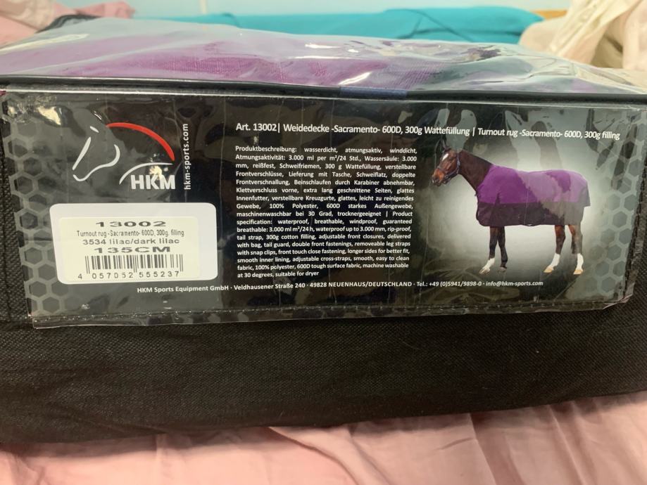 Prodajem nove HKM stalske deke s etiketom. Duljina deka je 135 cm, punjenje 300g. Dostupna su 4 komada: zelena siva i 2 ljubičaste. Cijena se odnosi na komad