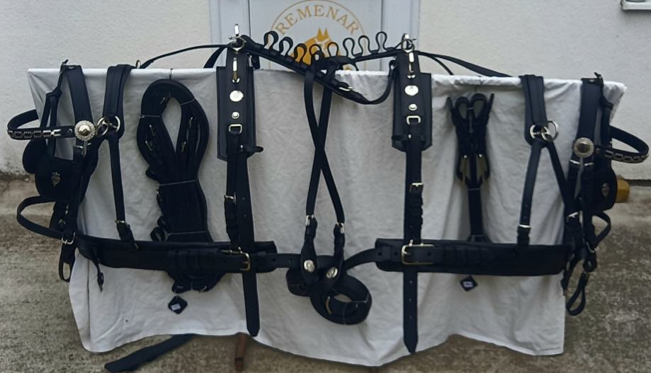 Orma za dvopreg ( hamovi , oglavine , kajase , prsno ogrlje ) , izrazito kvalitetna koža , srednja veličina , rad naše radionice i garancija te eventualni servis , slanje poštom uz dogovor , dodatne fotke ili info na viber ili whatsapp .