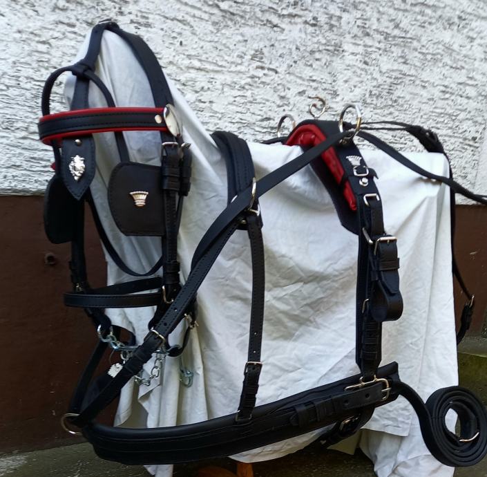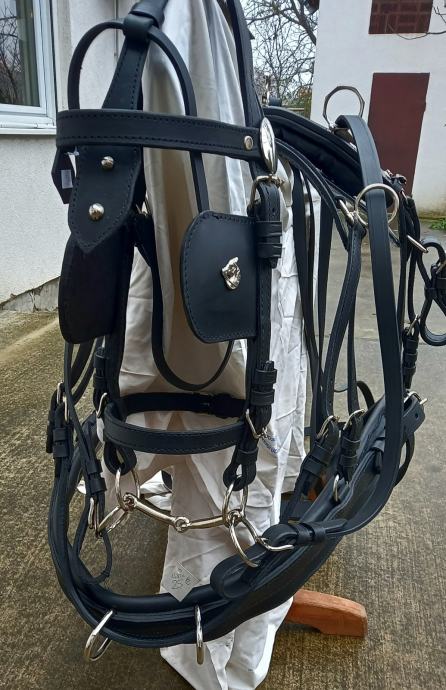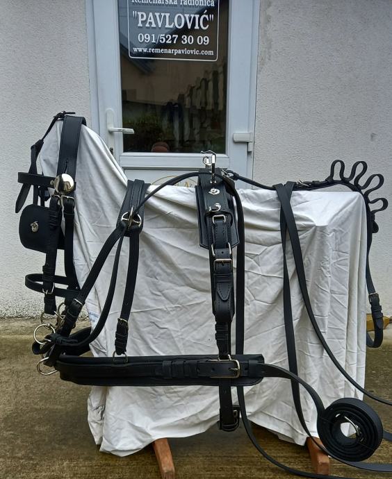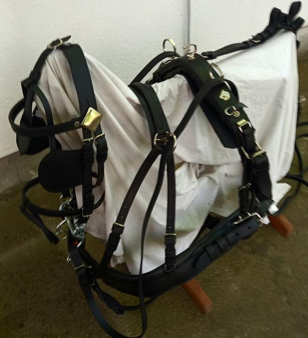 Orma za jednopreg - komplet : ham za 2 rude i za 1 rudu , sa kožnim štragama i podrepnjakom , oglavina sa žvalom i uzde , veličina cob - full , sve od kvalitetne kože , novo , garancija , servis , slanje poštom .