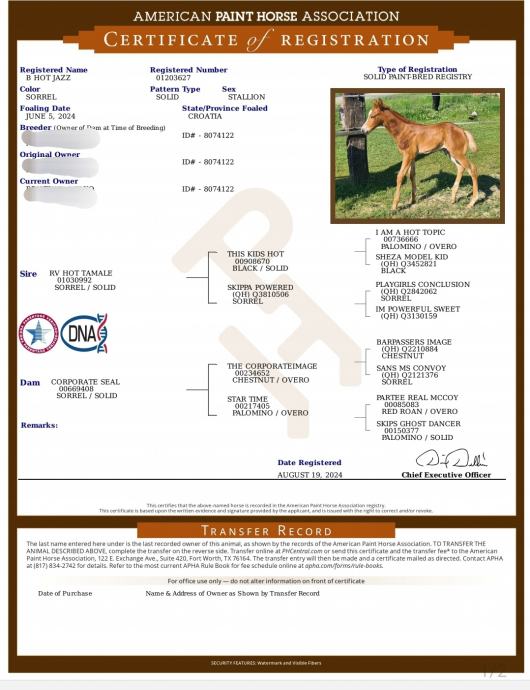 Prodajem muško ždrijebe pasmine paint s rodovnikom. Oždrebljeno 5.6.2024. Majka paint Corporate Seal, otac quarter Hot Tamale.