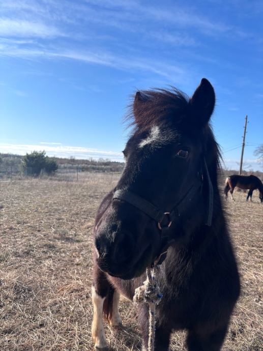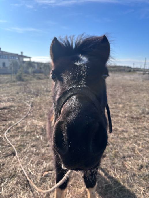 Prodaje se poni star 2 godine, otac toplokrvnjak, majka poni. mirnog temperamenta, ne udara i lako se vodi. Naviknut na osnovni rad, prima sedlo bez problema i dobro reagira na komande.