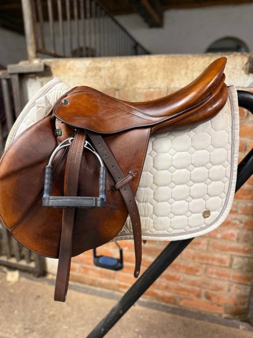 Prodaje se preponsko sedlo Stubben Edelweiss deluxe 17,5” smeđe boje. Close contact paneli, uski twist sjedišta. Sedlo je redovno održavano i uz minimalne tragove korištenja. Prodaje se zajedno sa Stubben uzengijskim remenima i navlakom.