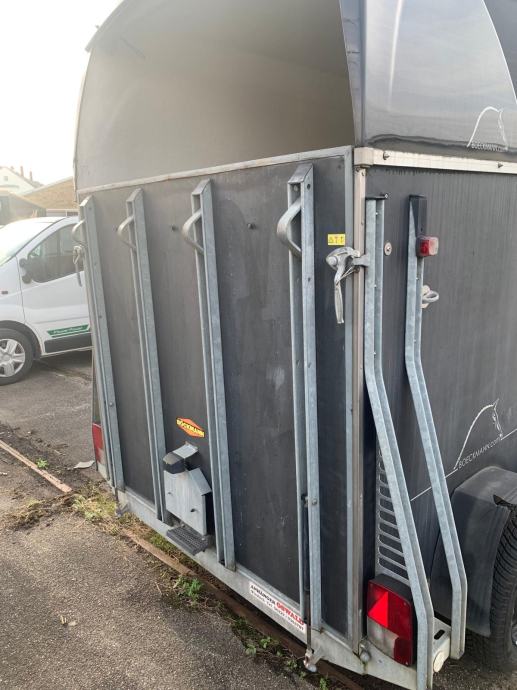 Prodajem prikolicu za konje u jako dobrom stanju. Prikolica nije registrirana u RH , ima Njemaćke papire . Prikolica ima i aluminijski pod . Plastični blatobrani su popucali i imaju novi za promjeniti. Godina 2014. Vrata se mogu zaključati.