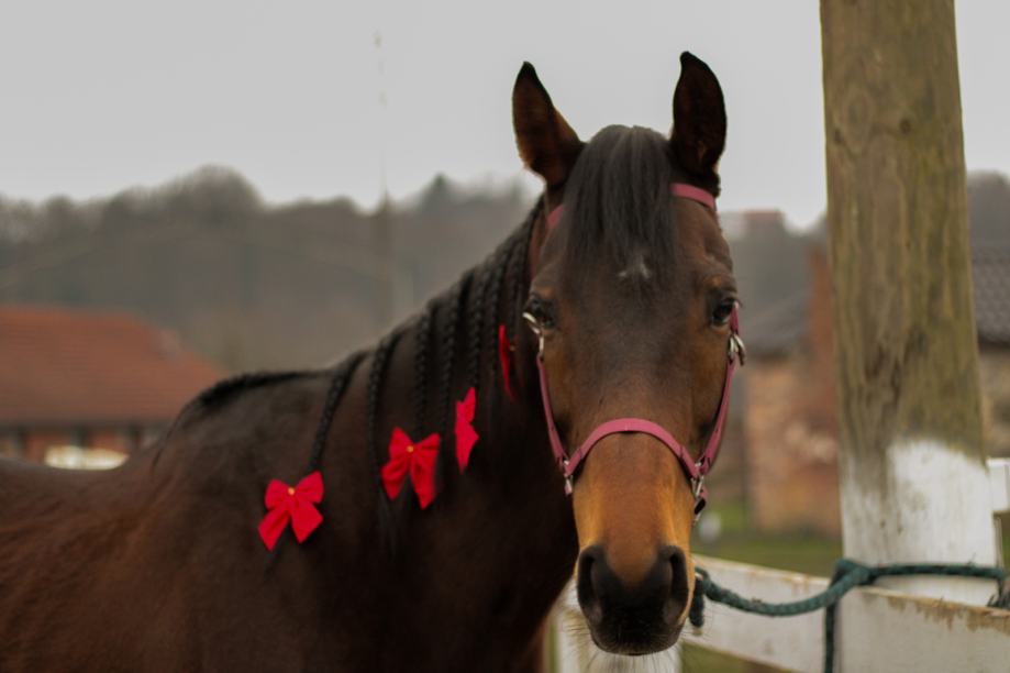 Naučena na pastir, trenutno u ispustu sa 15ak drugih konja na pansionu.