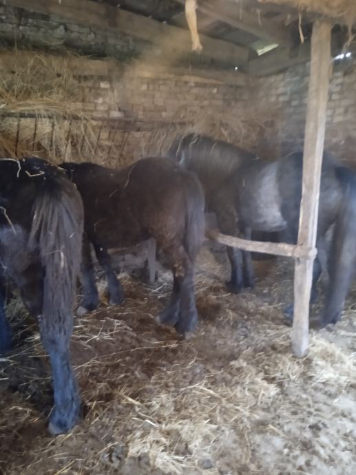 Prodajem radi preseljenja. Muška ždrebad hrvatskog posavca 2 kom. 10mj. teški oko 350kg i 2 komada 2 god. teški oko 500kg.