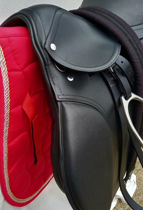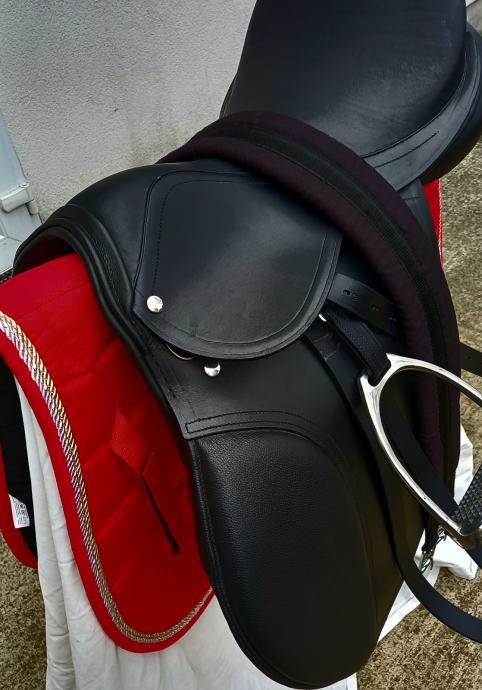 Sedlo veličine 18 incha , od kvalitetne kože , u kompletu sa : kolan , podsedlica , kožni stremeni , uzengije , po želji dužina kolana i boja podsedlice , novo , slanje poštom moguće uz dogovor , info na viber ili whatsapp .