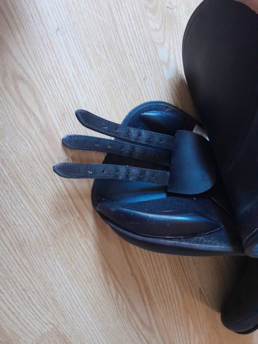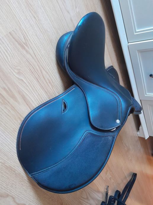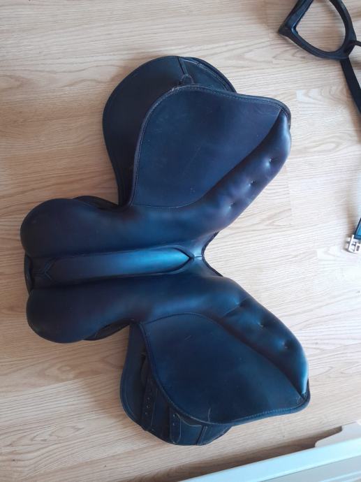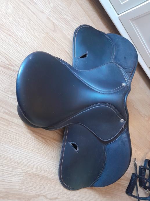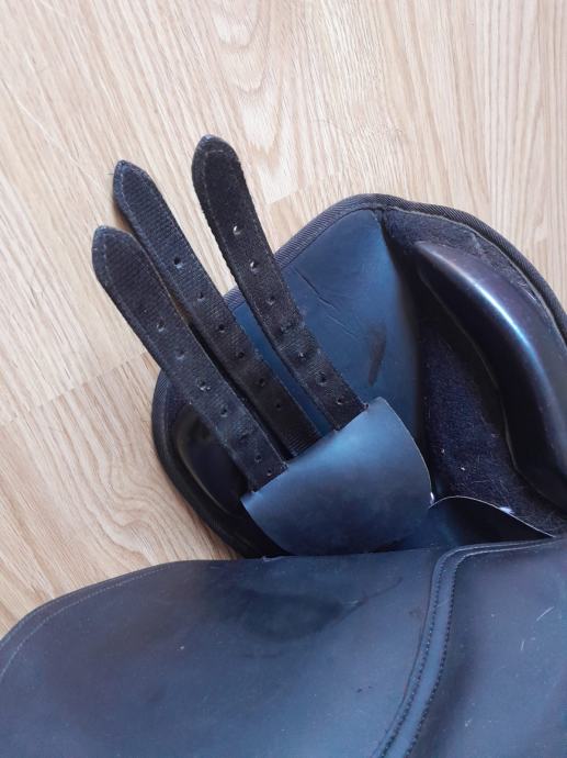 Prodajem sintetičko sedlo, 16 inča. Sedlo je očuvano i nije puno korišteno, jedino je površinski sloj stremenih remena oštećen (vidi se na slikama).