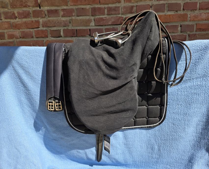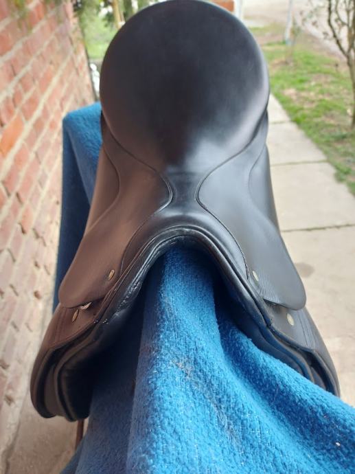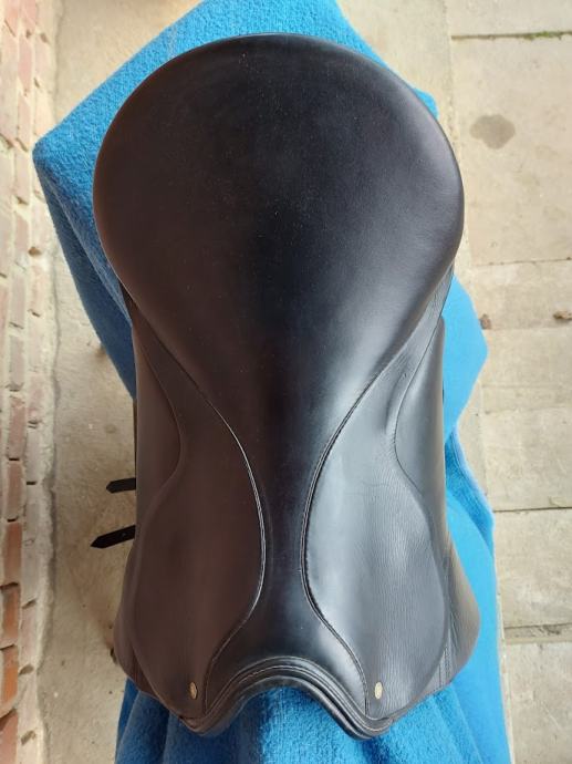 Na prodaju dresurno sedlo marke Passier & Sohn, model George Theodorescu (GT). Sedlo je u odličnom stanju, redovito održavano, čišćeno i mazano. Potege su zdrave i ispravne. Veličina sedla je 17,5'', a odgovara srednje širokim konjima s izraženim grebenom. Uz sedlo idu kolan dužine 80 cm, stremeni remeni dužine 160 cm, stremeni, navlaka za sedlo i nova crna dresurna podsedlica (sva oprema osim podsedlice je korištena). Cijena sedla je 500 eura. Zvati ili poslati poruku na 095 884 7377.