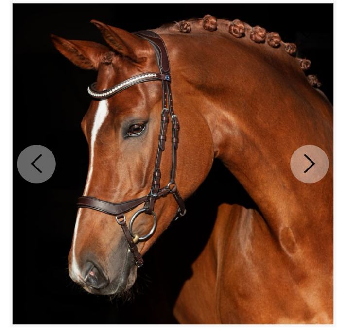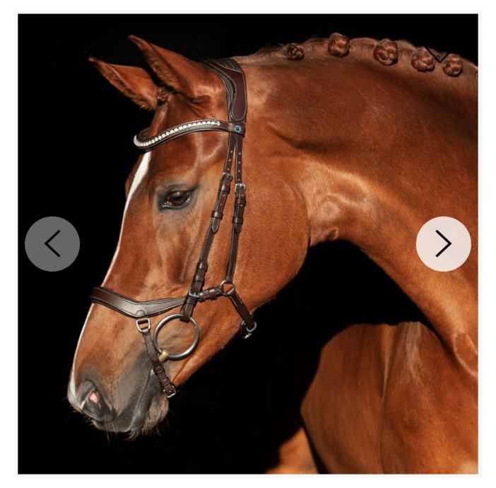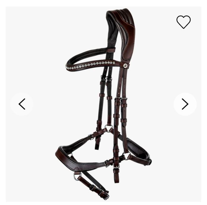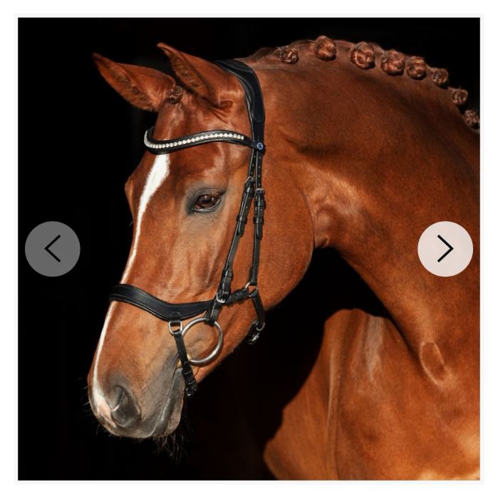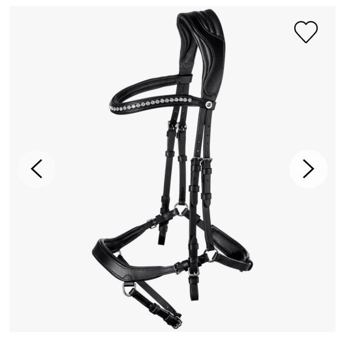 Oglavina s širokim glavnim dijelom i izrezanim dijelom koji se sastoji od mekane podstave. Zakrivljeni podstavljeni čelni pojas s bijelim kamenčićima. Visina i položaj nosnog remena su podesivi. Meka podstava na nosnom remenu, mekani, podesivi jastučić ispod čeljusti.