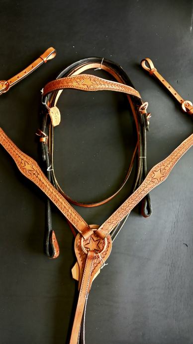 Komplet western oglavina , dizgini i pršnjak , kvalitetna koža , prodaja može i samo oglavina , novo , slanje poštom .