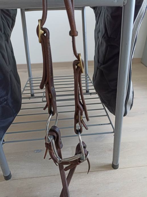 - iznimno kvalitetnu kožnu uzdu sa podbradnim remenom i kožnim dizginima, COB veličina, kupljeno na sajmu u Veroni.