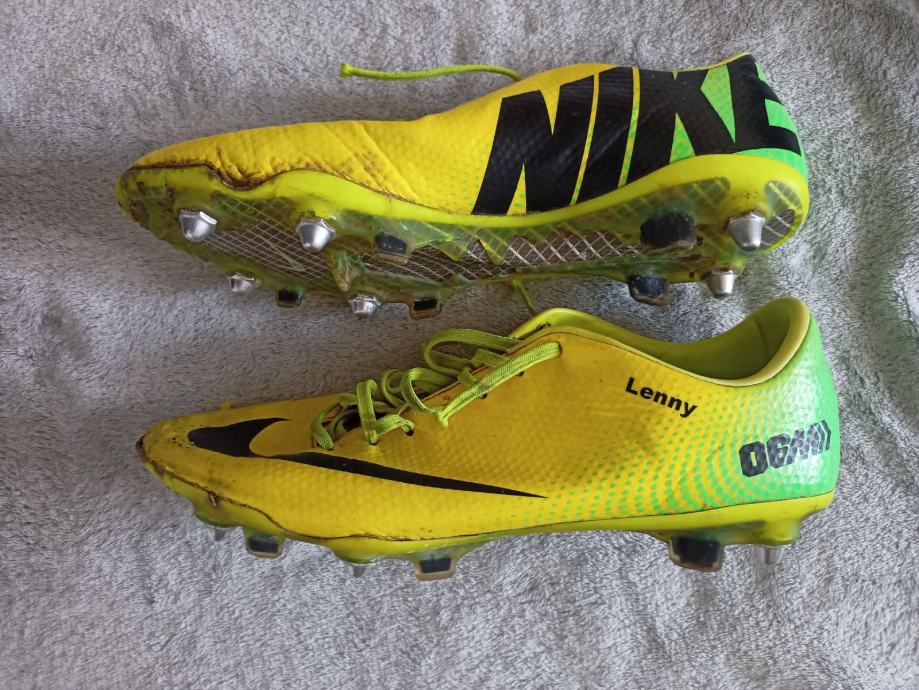 POKLON uz kupnju ovog oglasa su žute Nike kopačke s metalnim čepićima, veličina EUR44 dosta nošene ali mogu još poslužiti, puni naziv je NIKE VAPOR IX SG PRO 555607-703 a bile su plaćene 200eura (iako su sada na sniženju 120eura vidljivo na slici)