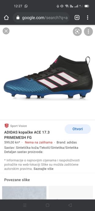 Plave kopačke ADIDAS ACE 17.3 PRIMEMESH FG plaćene 600kn (vidljivo na slici) ali PRODAJEM ZA 400kn (53€)