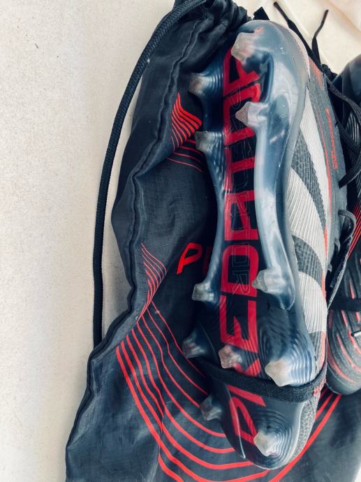 Prodajem rabljene Adidas Predator 1st Class kopačke u veličini 43 i 1/3. Radi se o modelu u crnoj boji s crvenim detaljima, koji dolaze s originalnom vrećicom za nošenje. Kopačke su opremljene čvrstim čepovima, pogodnim za prirodne podloge. Korištene svega 3x na treninzima