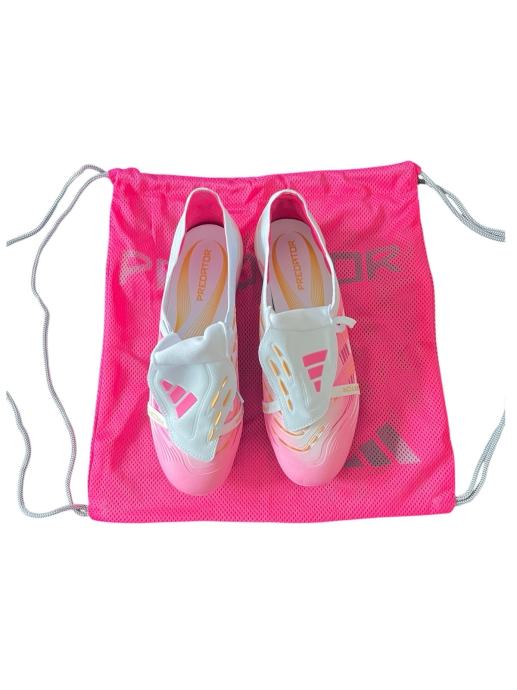 Prodajem potpuno nove Adidas Predator Elite kopačke u bijelo-ružičastoj boji. Vrhunski model namijenjen za profesionalne nogometaše dolazi u originalnoj Adidas vrećici. Idealne su za one koji traže savršenu kontrolu lopte i maksimalnu udobnost tijekom igre.