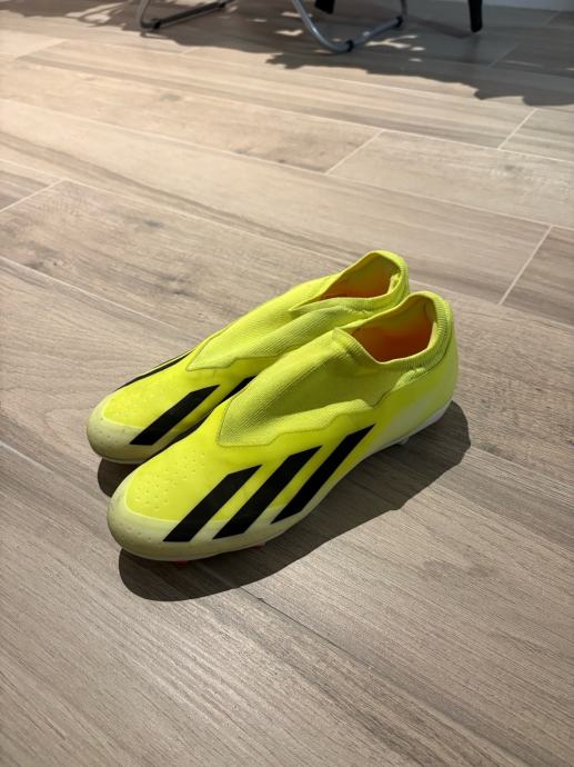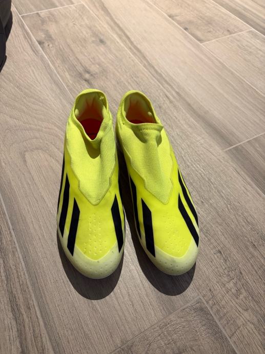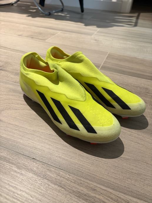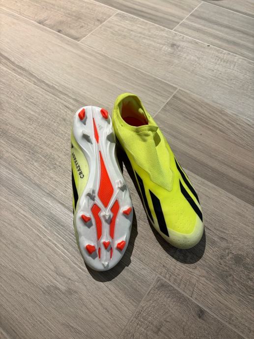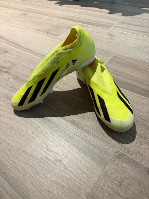 Prodajem rabljene Adidas x Crazyfast Academy kopačke u upečatljivoj neonsko žutoj boji s crnim detaljima. Lagane su i aerodinamičnog dizajna, idealne za brze igrače koji traže dobar grip na terenu. Unatoč korištenju, kopačke su u dobrom stanju jer su korištene svega mjesec dana te sam shvatio da su mi prevelike pa sam ih odlučio prodati. Broj su 46