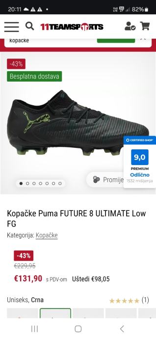 Prodajem kopačke, isprobame ali su mi prevelike pa ih prodajem, imam račun broj 45. Kupljene preko 11 team sports na akciji.