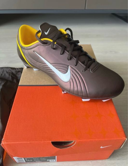 Prodajem potpuno nove Nike Mercurial Vapor 1 CR7 Origins RGN SE FG kopačke u smeđoj boji s žutim detaljima. Profesionalne kopačke s jedinstvenim dizajnom inspirirane Cristianom Ronaldom, savršene za vrhunske performanse na terenu. Dolaze u originalnoj kutiji, nikad korištene.