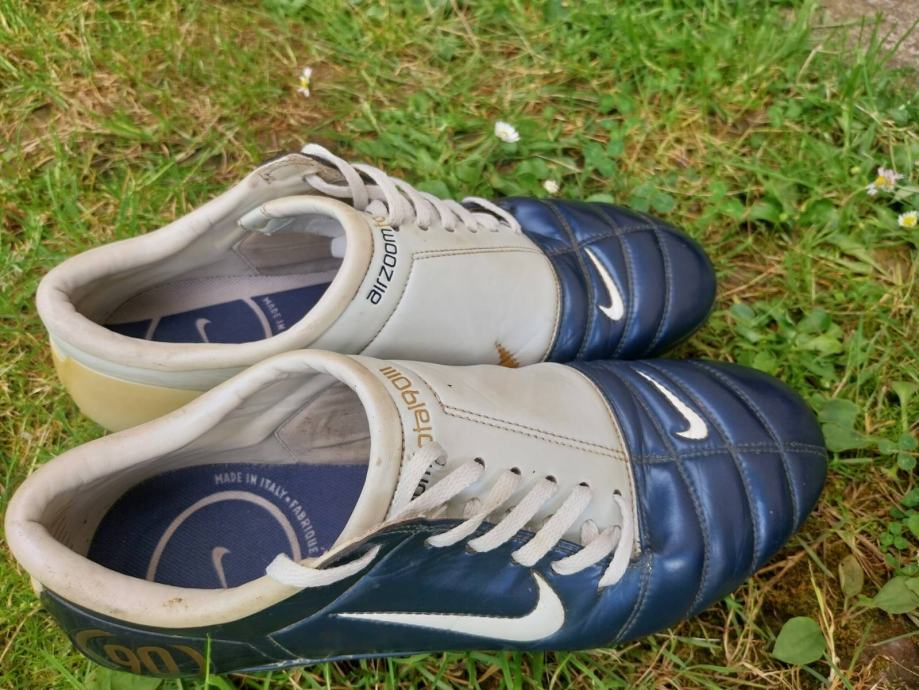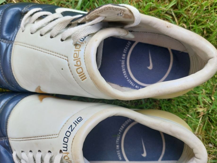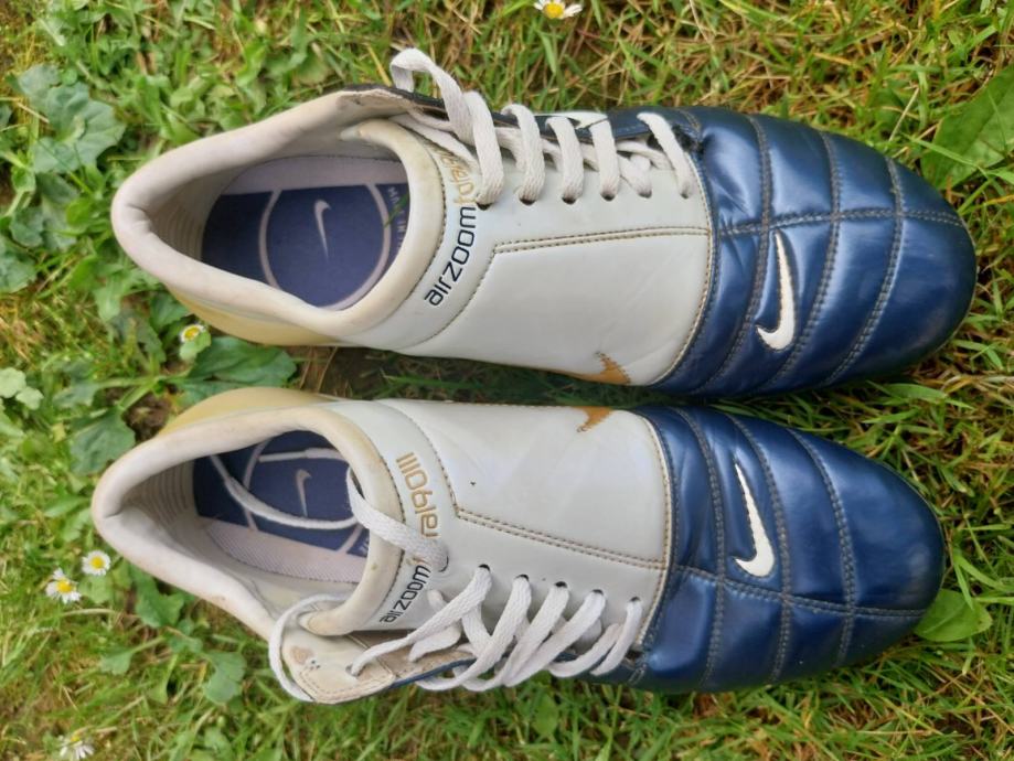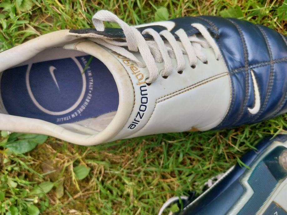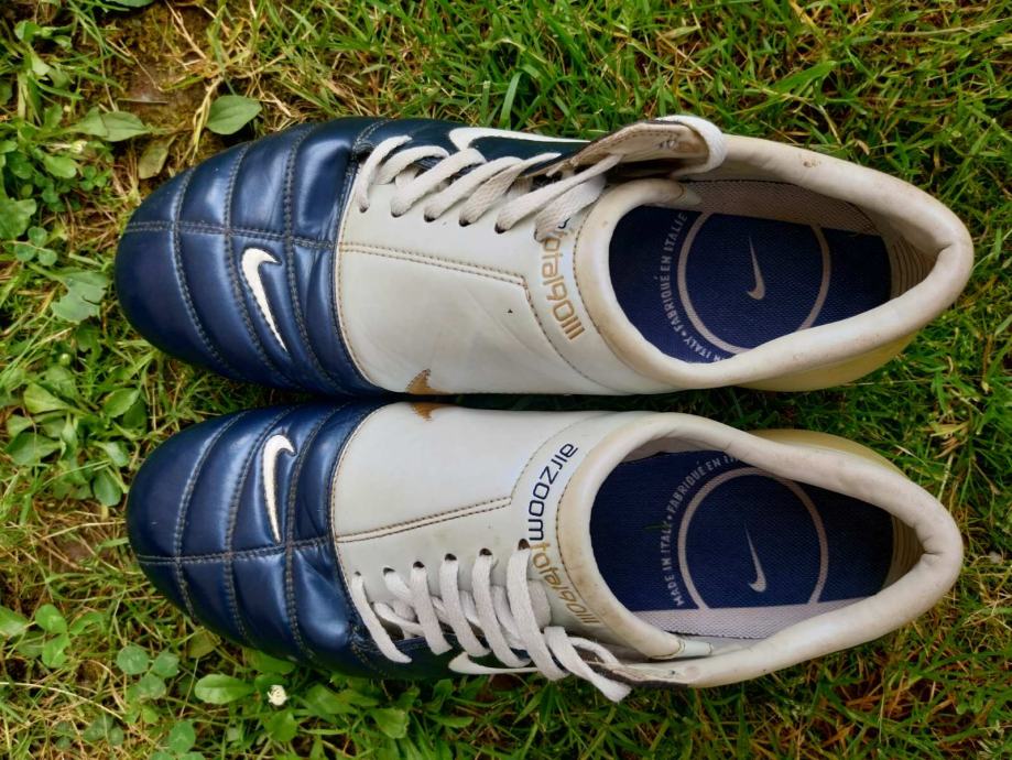 Kopacke Air zoom 90 III plavo bijele.Kopacke su u odličnom stanju nosene manje od 10 puta. A klasa, metalni cepici koji se mogu zamijeniti s obicnim plasticnim cepicima, kopacke su napravljene od kvalitetne kože. Broj kopacka je 42.5