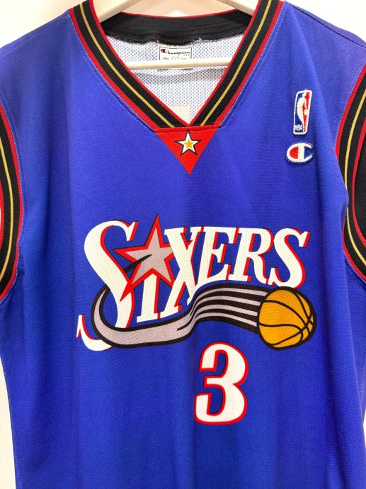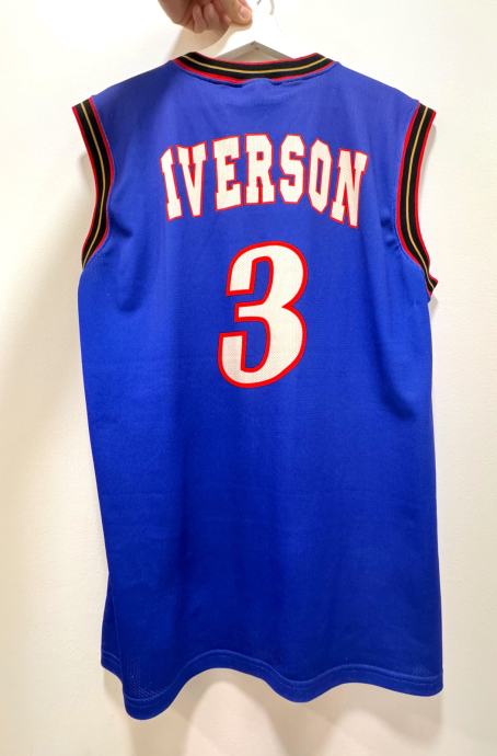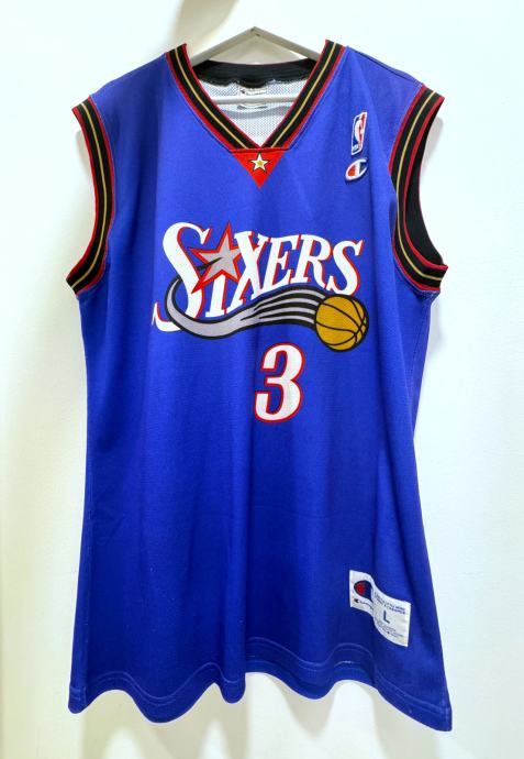 Prodajem NBA Sixers dres Allen Iverson #3, original Champion, NBA znak usiven, ostalo print. Veličina L, stanje odlično! Kolekcionarski primjerak iz 1990-ih.