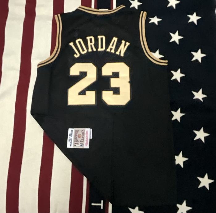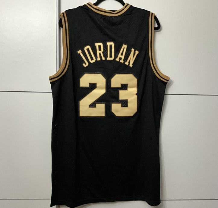 Pokazi se da vol is Chicago Bulls i legends Michael Jordan s ovim zlatnim izdanjem NBA dresa, dres prikazuje inetečnu Chicago Bulls crnu boju sa lijepim twistom od zlatne boje.. dres je šivam ime i brojevi i dres je apsolutno lijep za bilo kojeg kolekcionara ili navijača košarke..velicina 2xl..