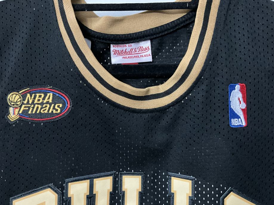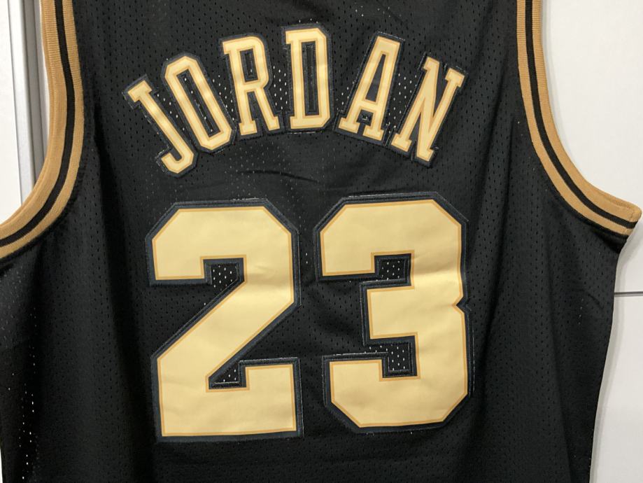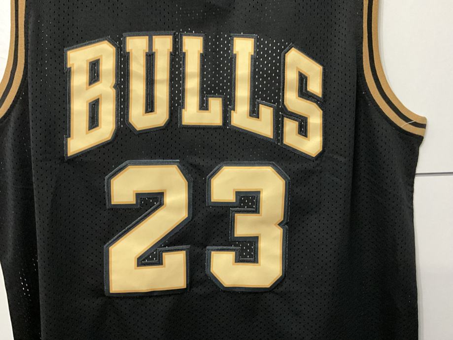 Show off your love for the Chicago Bulls and the legendary Michael Jordan with this golden edition NBA Swingman jersey. This jersey features the iconic Chicago Bulls black color scheme with a stunning gold twist, perfect for any Bulls fan. The jersey is stitched with high-quality materials to ensure durability and longevity, making it the ideal addition to any basketball fan's collection