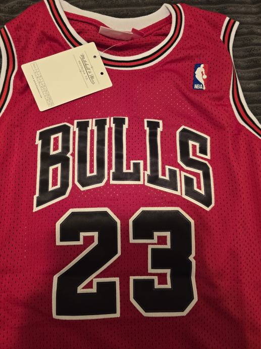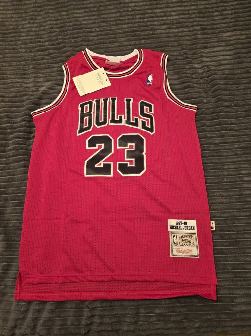 Prodajem NBA dres Chicago Bullsa s brojem 23, Michael Jordan iz sezone 1997-98. Dres je veličine L, crvene boje s karakterističnim detaljima Bullsa - crno-bijeli obrubi na vratu i rukavima te NBA logo. Hardwood Classics kolekcija od Mitchell & Ness. Dolazi s etiketom, potpuno nov.