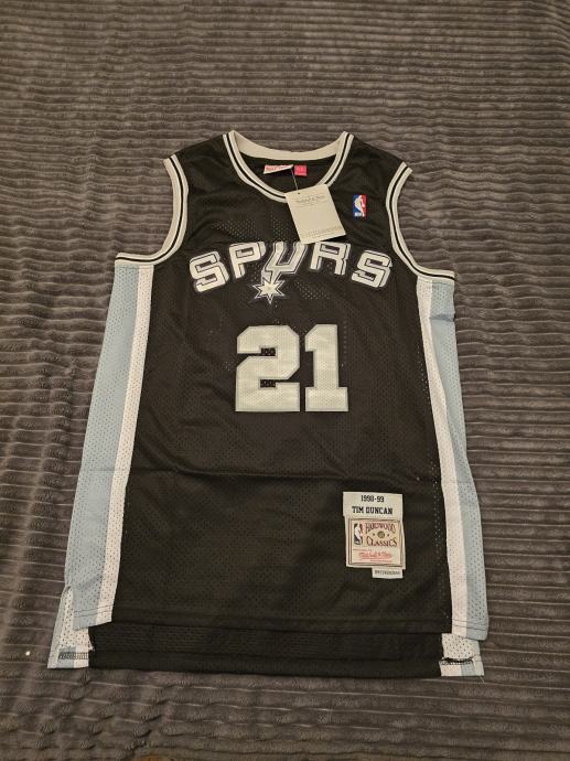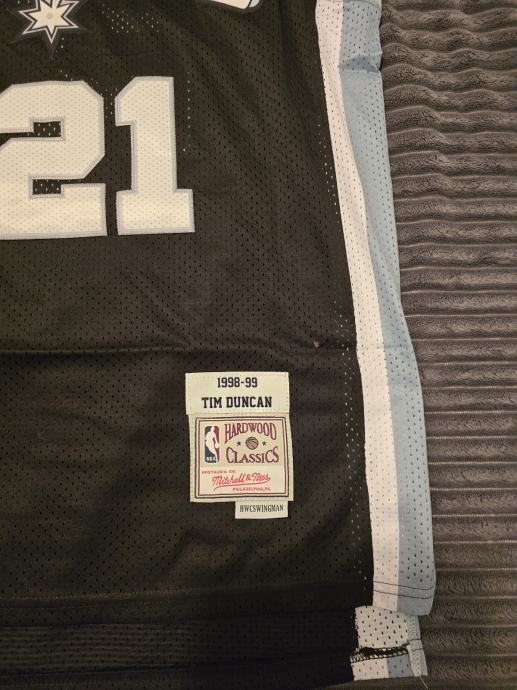 Prodajem NBA dres San Antonio Spursa s brojem 21 Tima Duncana iz sezone 1998-99. Dres je veličine XL, crne boje s bijelim detaljima. Radi se o Mitchell & Ness Hardwood Classics retrо modelu, što znači kvalitetna replika iz legendarne sezone. Dres je potpuno nov s etiketom.