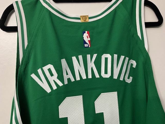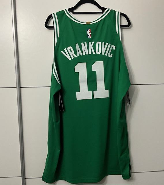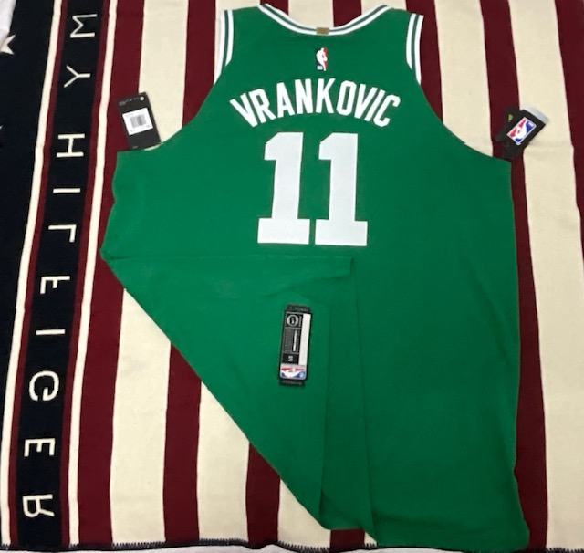 Show your Boston Celtics pride with this authentic jersey, Nike Vaporknit NBA went to Boston STAR and honor his name on their jersey Vrankovic #11, this green jersey is made with high-quality materials and features Vrankovic name and number on the back, this jersey is a must-have for any true Celtics fan. The jersey is available in size 58 xxl, designed for player and has not been modified. Get your hands on this officially licensed product today and show off your love for the NBA and the Celtics ....