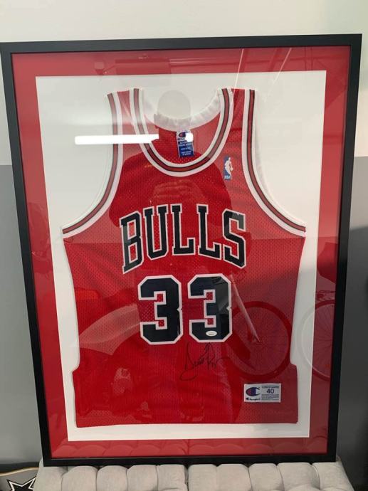 Original Dres Chicago Bullsa iz 90ih sa originalnim potpisom igraca dres je novi made in USA by champion, posjedujem certificate of authenticity. Top dekor za sportski bar