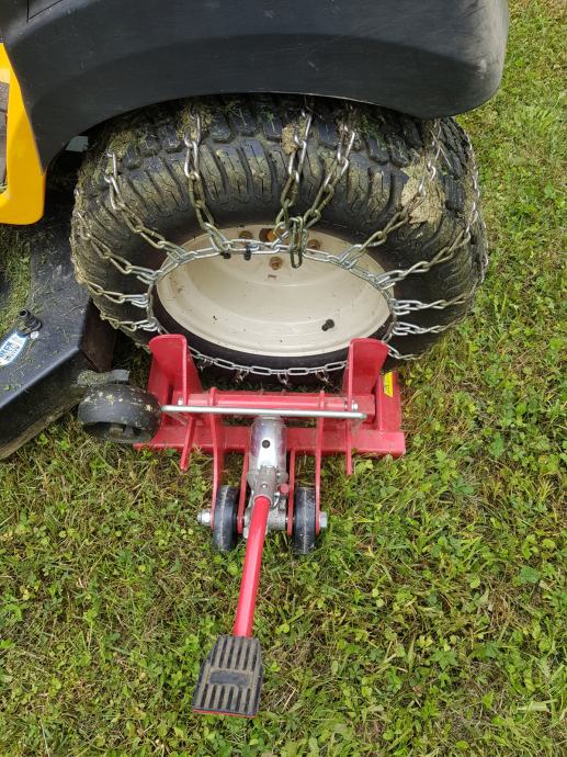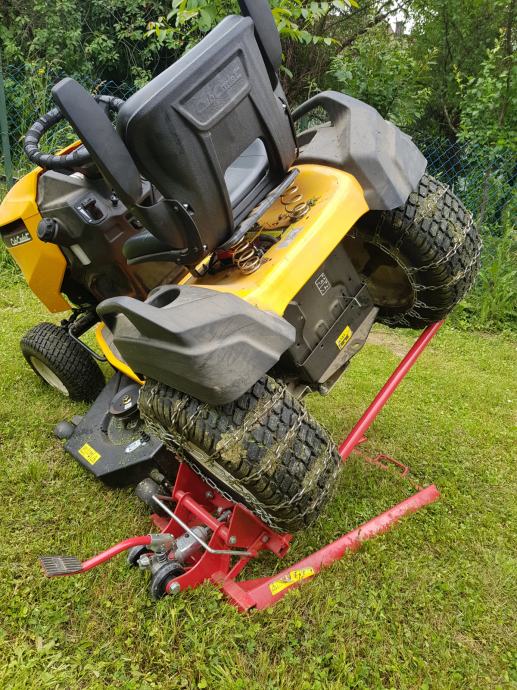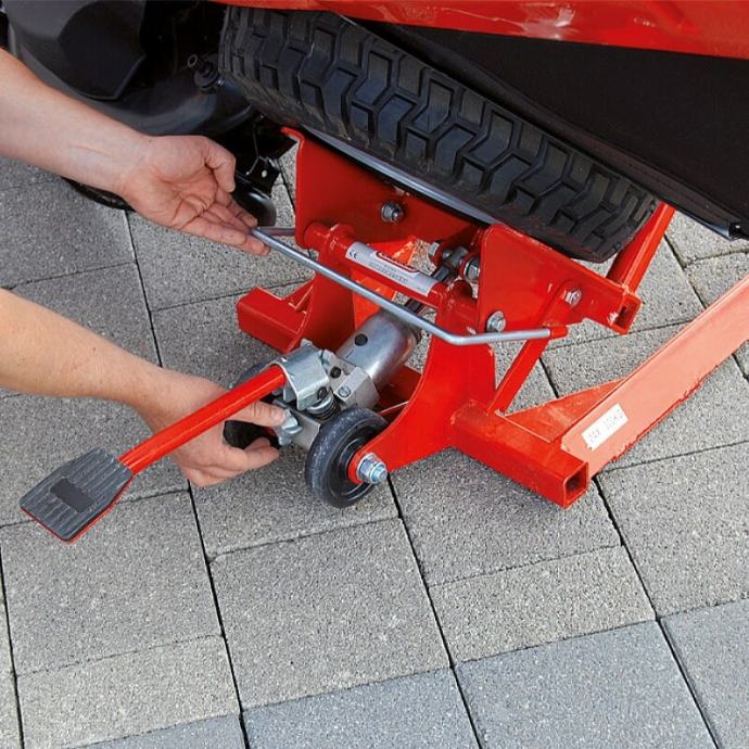 Dizalica putem hidraulične pedale podiže traktorsku kosilicu i time olakšava njezino održavanje i čišćenje kućišta (zvona) noževa kosilice nakon svake košnje .