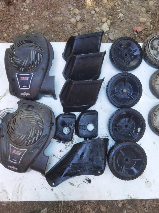 Poklopac filtera 10e,točkovi 2e, usmjerivač trave 5e,bobina 5e, poteznica starter 15e karburator 15 e