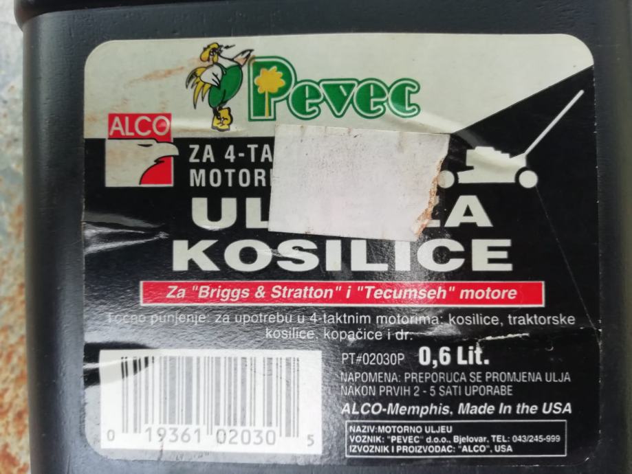 Točno punjenje 0,6 l za upotrebu u 4-takrnim motorima: kosilicama, traktorskim kosilicama, kopačicama i dr.