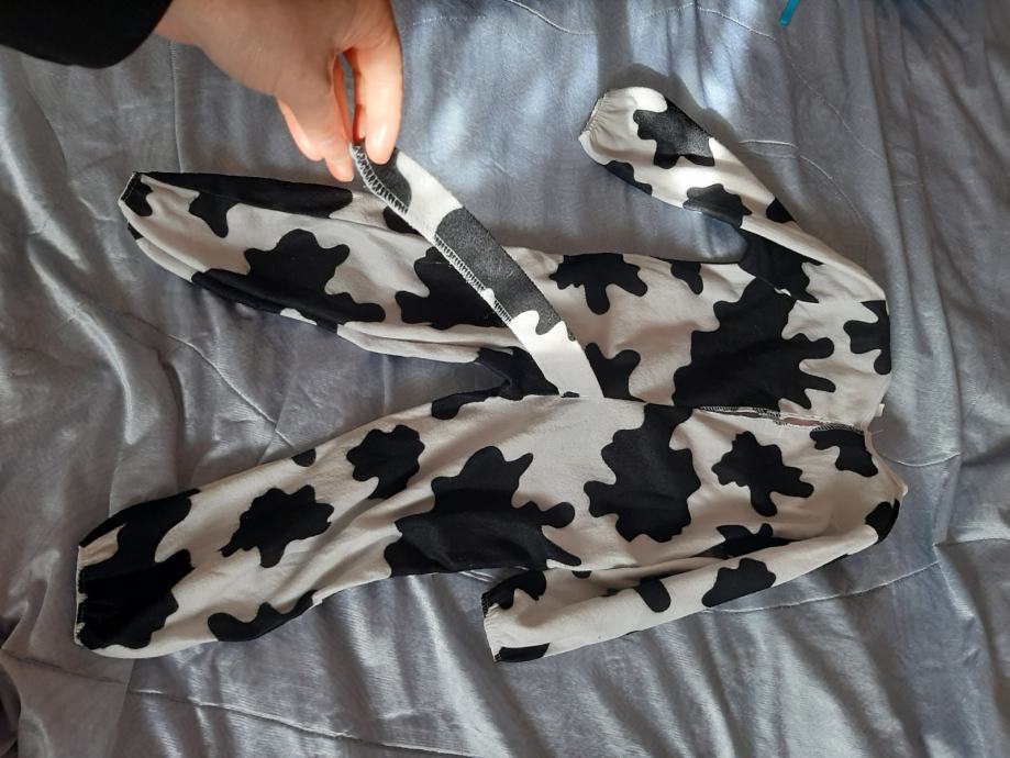 Dječji kostim za maškare kravica. Nošen kratko, očuvan. Vel. 110-116 Dužina od vrha ramena do dolje 78cm, širina od pazuha do pazuha 34cm. Dužina međunožja 39cm