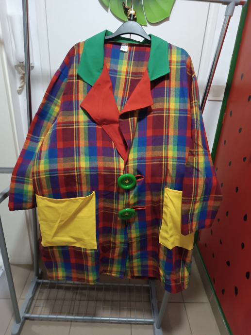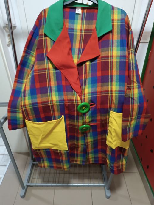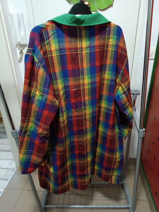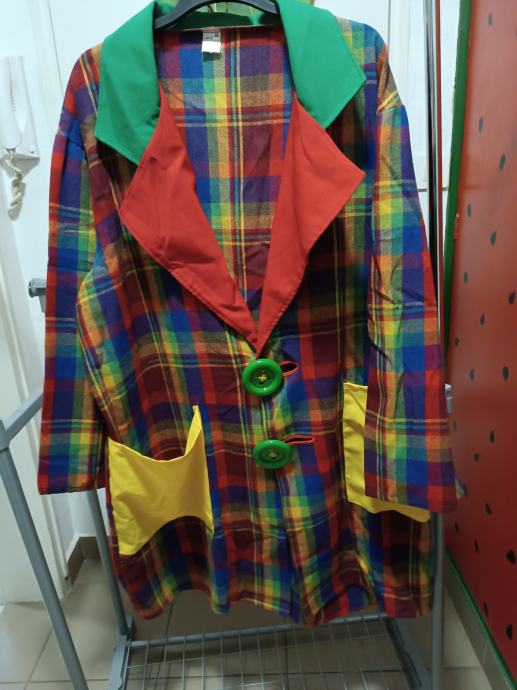 Predivna klaunska jakna, velika, uni, posebna, kopča se s dva velika zelena gumba.