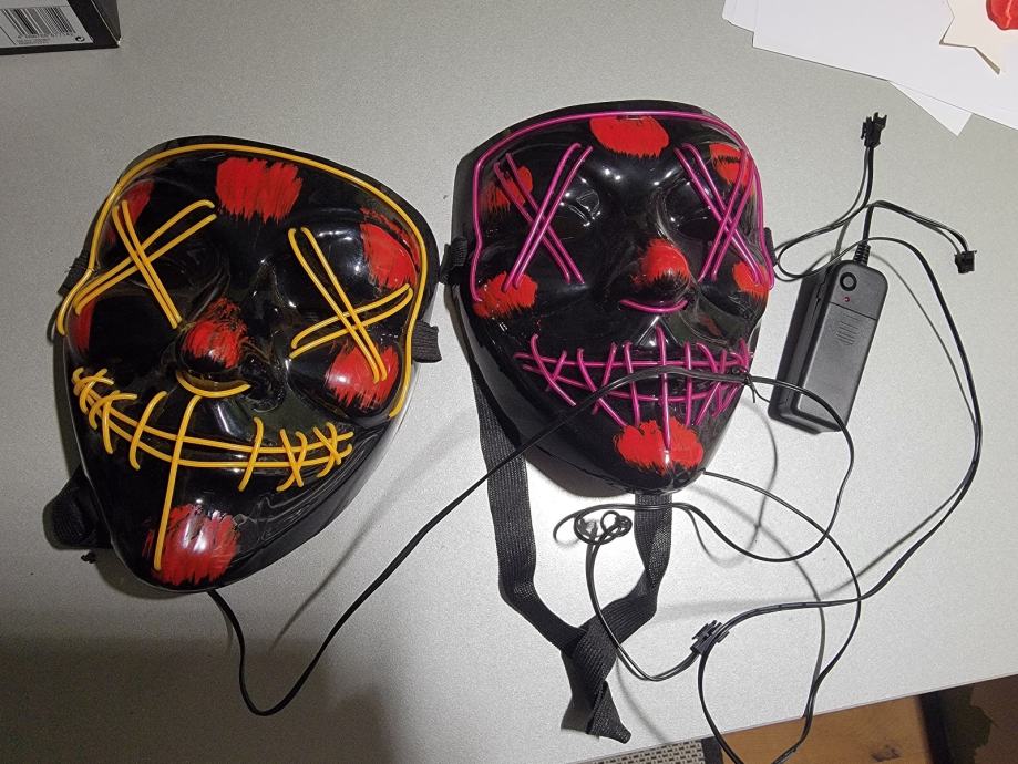 Dvije maske na baterije svijetle u mraku,no samo jedan daljinski za paljenje.