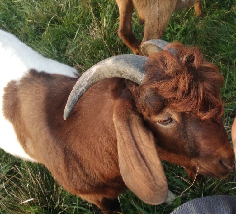 Prodajem dvije Burske koze i jarca stare godinu dana i prodajem jednu smedu kozu staru 4 godine