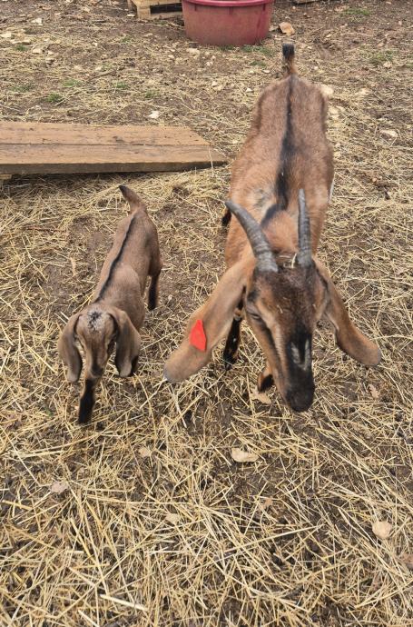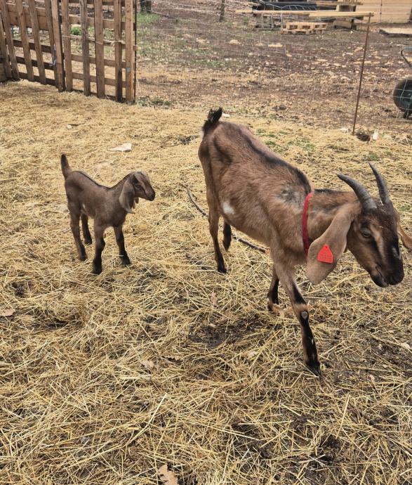 Mlada koza prvojarka, 50% anglonubijska/alpina i jarić, 75% anglonubijski, star 15 dana