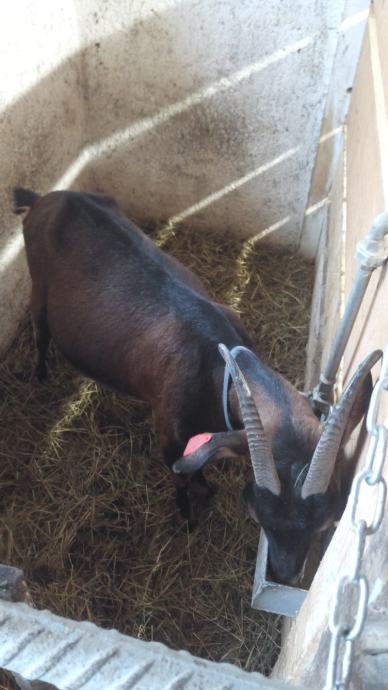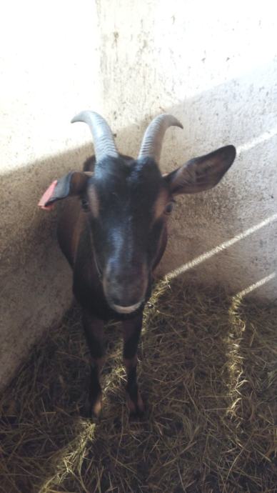 Prvojarka koza sa markicom. Upravo je na vrhuncu laktacije ali ima problem kod dojenja. Jedno vime ima dupli izlaz mlijeka pa se teško doji. S obzirom da na farmi imamo mnogo koza teško nam se posvetiti njoj. Doji od 1-2 litre. Ima markicu i status slobodan od bruceloze i tuberkuloze. Hitno se prodaje!