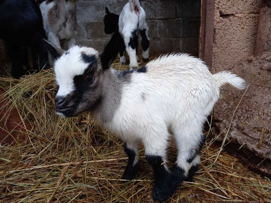 Mi smo malo poljoprivredno gospodarstvo koje sa ljubavlju uzgaja i brine se o tim dragim i veselim bićima.U ponudi nudimo šest patuljastih kozlića:pitomih,dragih i nadasve privrženih djeci.Prvo leglo smo imali u 1.mjesecu,ostali su stigli nedavno i zato se primaju rezervacije.Patuljaste koze se daju u dobre ruke,onima koji će ih čuvati,paziti i maziti.Cijena je 90 eura po kozliću.