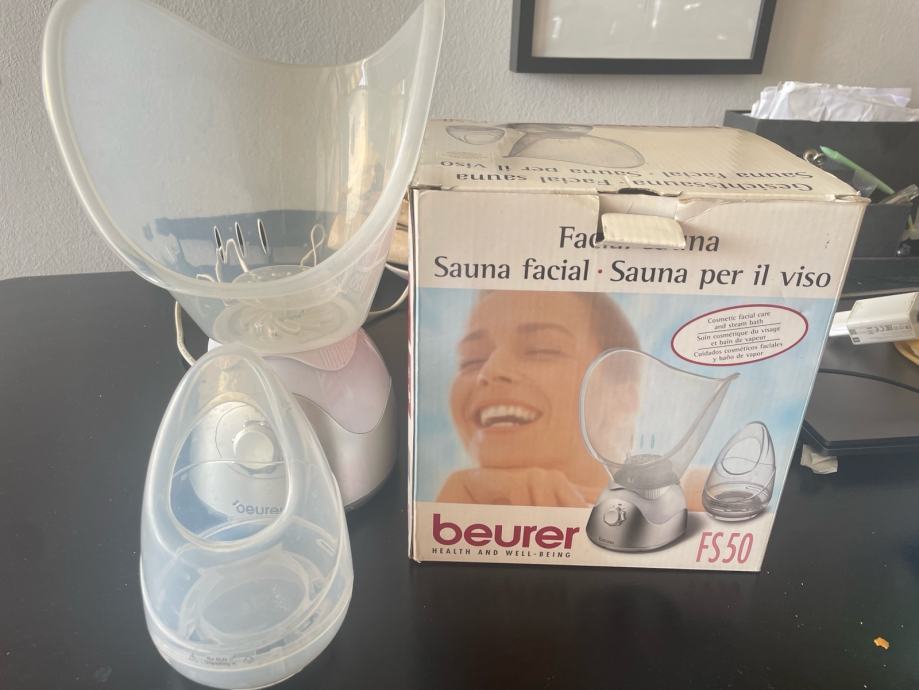 Sauna za parenje lica s dva nastavka i mogućnosti dodavanja eteričnih ulja. Korištena par puta, radi kao prvog dana